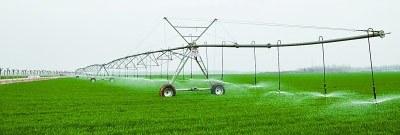 為應(yīng)對地下水資源短缺,河南省許昌市建安區(qū)陳曹鄉(xiāng)尚莊村用電動平移噴灌機(jī)為麥田澆水。新華社發(fā)